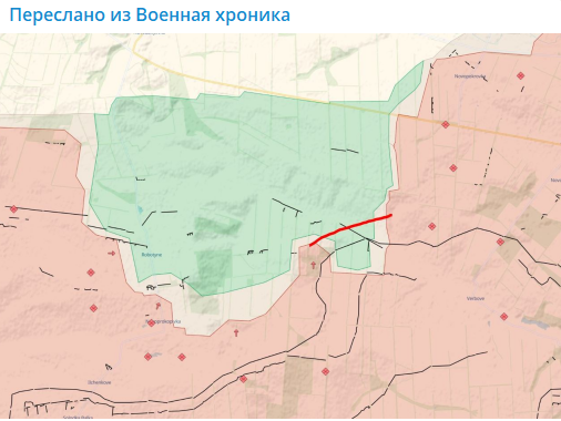 Ситуацию в районе Работино наглядно отражают две карты телеграм-канала "Военная хроника". На одной показан выступ восточнее посёлка, который, как полагают западные аналитики, будет срезан русскими в ближайшее время.