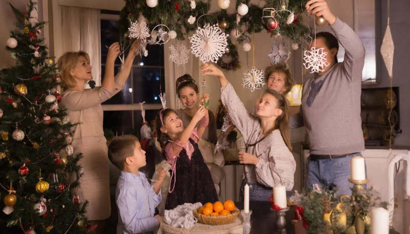 Подойдёт всё, что ассоциируется с праздником. Для каждого этот набор индивидуален. Ароматизированные свечи, фигурки Деда Мороза и Снегурочки, наклейки на окна… Кстати, снежинки и гирлянды можно вырезать самим, дав вечером мастер-класс детям. Совместная подготовка поможет настроиться на праздник не только малышам, но и взрослым.