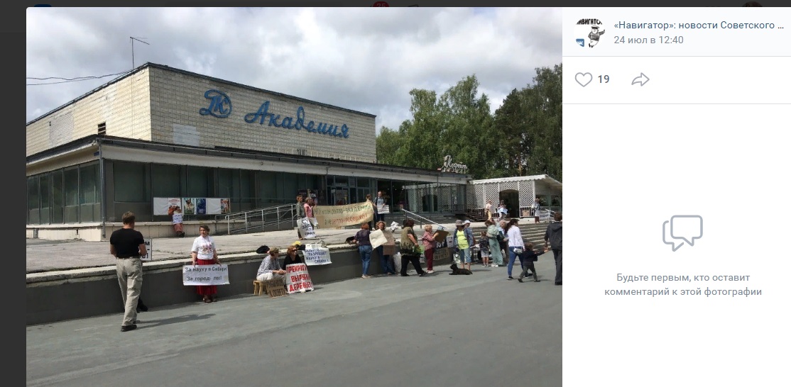 Известно, что акция согласована мэрией, и она стала первой с начала введения коронавирусных ограничений. С 24 по 29 июля в Академгородке пройдёт шесть подобных пикетов, уточняет издание "Родные берега".