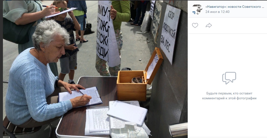 Также они собирали подписи в поддержку леса, написали в официальной группе газеты "Навигатор": новости Советского района и Бердска".