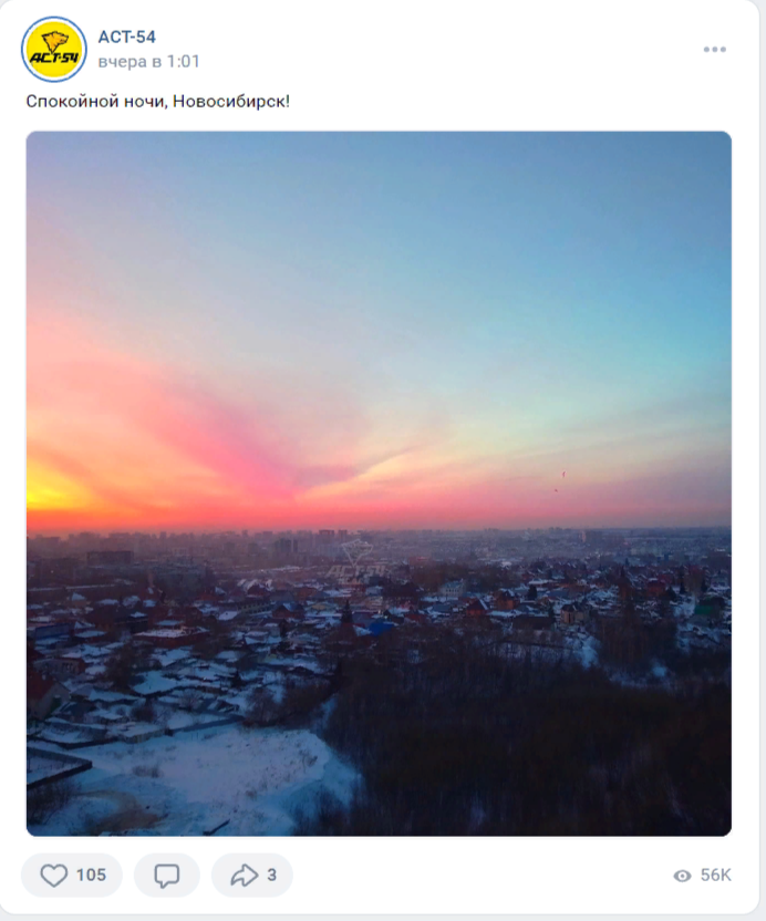 Удалось полюбоваться горожанам и "сказочным" закатом. Подписчики группы "АСТ-54" в соцсети "ВКонтакте" запечатлели огненный закат с "жар-птицей".