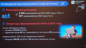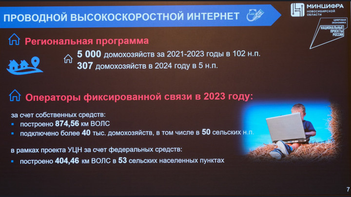 За минувшие пять лет в Новосибирской области, благодаря инициированному президентом Владимиром Путиным национальному проекту "Цифровая экономика", федеральным и областным программам, заметно снижено цифровое неравенство между жителями города и села. Оптоволоконные линии связи за этот период протянули до более чем 900 населённых пунктов. Более того, абсолютно все социально значимые объекты подключены к высокоскоростному интернету.