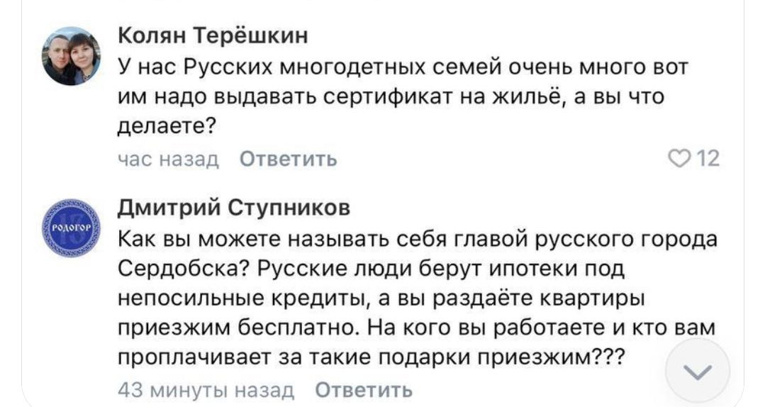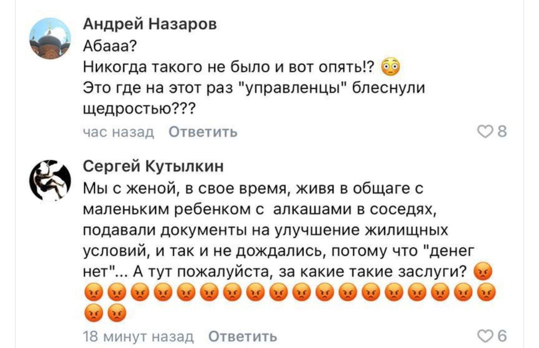 Выдача сертификатов вызвала недовольство у жителей. Когда люди, которые годами копили деньги на первый взнос ипотеки и экономят на всем ради погашения кредита, видят, как бесплатно раздают жилье, это вызывает у них мягко говоря недовольство. Многие задаются вопросом, по каким критериям выбирают тех, кто становится "опорой города", и почему на фотографиях изображены люди, которые выглядят совсем не так, как обычные местные жители, живущие в этих краях уже много поколений.