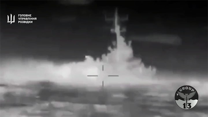 По видеозаписям видно, что корабль был поражён не менее чем тремя взорвавшимися дронами. Первый из них попал в левый борт корабля в центральной части корпуса, где обычно располагаются пусковые установки противокорабельных ракет на больших ракетных катерах проекта 12411 "Молния". Несмотря на полученное повреждение, корабль продолжает активное маневрирование.