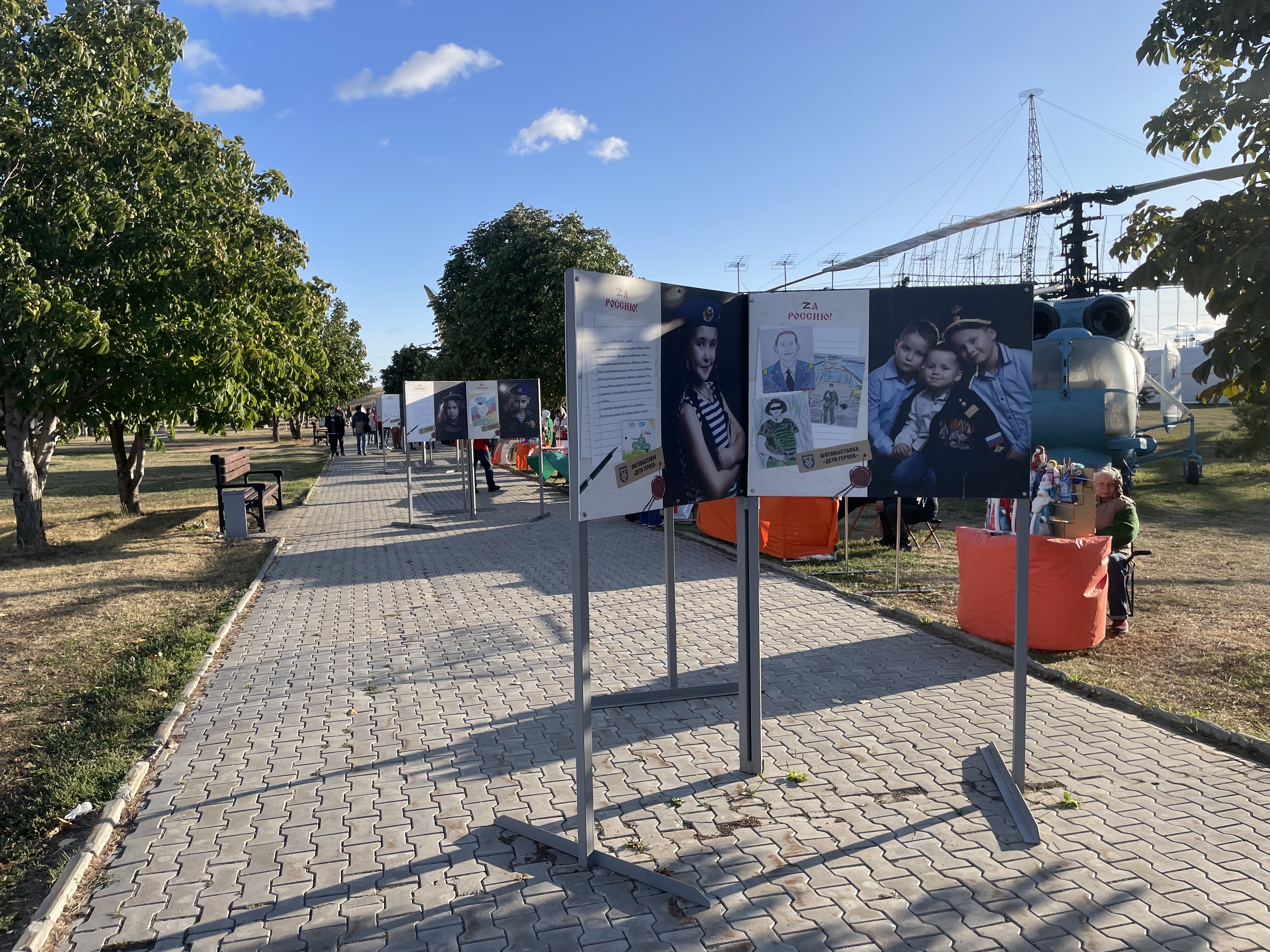 Параллельно на площадке фестиваля работали тематические площадки. Так, например, посетители могли принять участие в изготовлении защитных сеток для бойцов СВО. У юных гостей мероприятия интерес вызывала точка, где были представлены элементы вооружения. Также не фестивале была представлена фото выставка “Дети Героев”.