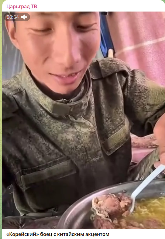 По ряду каналов активно распространяется видео, на котором, как заявлено, солдат Вооружённых сил КНДР обедает в зоне специальной военной операции. Съев традиционное корейское блюдо, он поблагодарил русских солдат. Однако историю испортил правильный перевод.