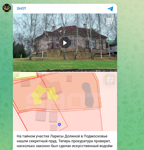 Эта история перекликается с другим громким делом, связанным с недвижимостью знаменитости. Ранее стало известно, что на подмосковном участке певицы Ларисы Долиной был обнаружен искусственный пруд площадью 230 квадратных метров, также возведённый, по данным проверки, в защитной прибрежной полосе без необходимых разрешений. По информации Telegram-канала SHOT, по этому факту также направлено обращение в прокуратуру.