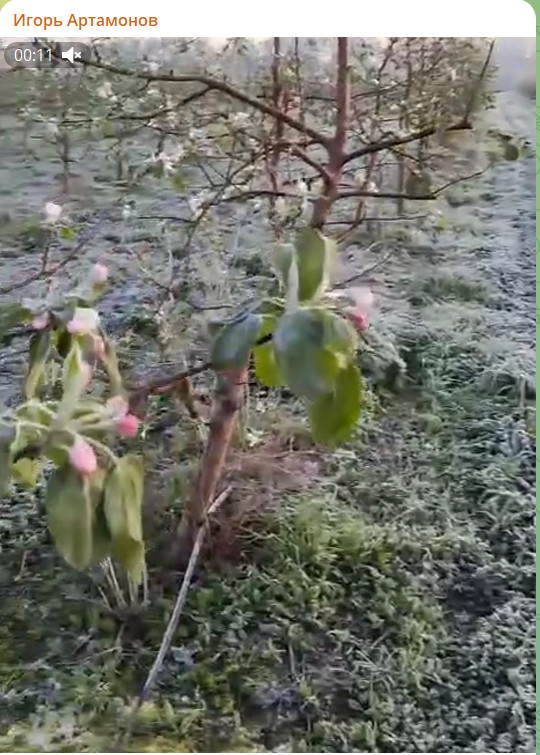Любой, хоть немного понимающий в сельском хозяйстве, ужаснётся от этих кадров. Все мы радовались тёплому апрелю и ранней весне. Как быстро всё зазеленело и расцвело. Но ударившие в начале мая заморозки привели к катастрофическим последствиям,