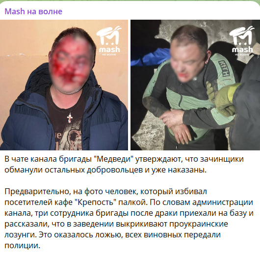 Уже после случившегося, выяснилось, что информация о проукраинских агитаторах оказалась ложью. В чате канала бригады "Медведи" подтвердили, что зачинщики обманули остальных добровольцев и уже наказаны, а позднее в сеть попали фотографии этих самых зачинщиков, на лице и теле которых видны серьёзные побои.