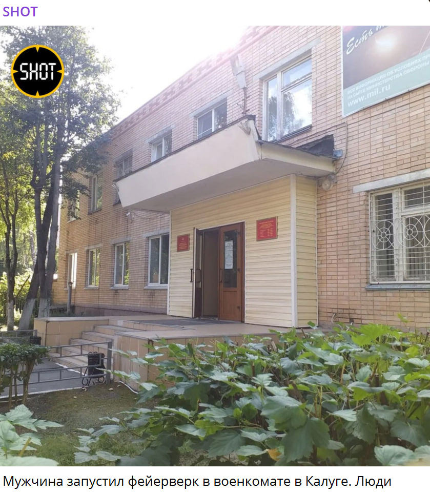 Ранее в Калуге задержали мужчину, который устроил залп в военкомате. Сообщалось, что неизвестный вошёл в военкомат в Ферзиковском районе города и запустил фейерверк. Люди прятались в кабинетах, когда начались залпы, информирует источник. Сообщается, что почти сразу всех эвакуировали через чёрный выход.