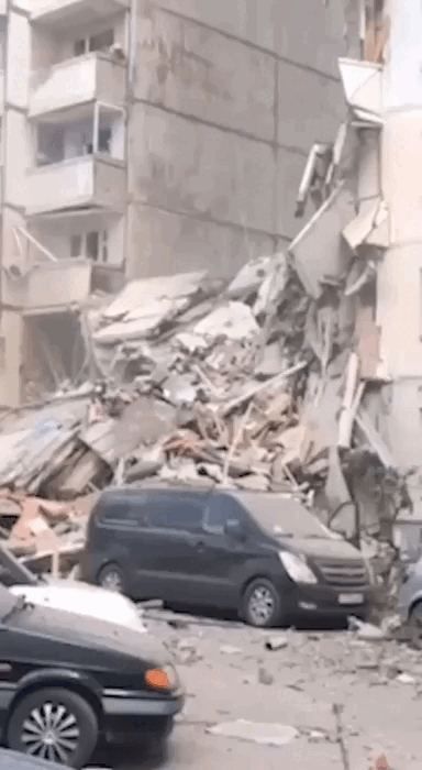 11:55 Стали появляться кадры обрушения подъезда жилого дома.