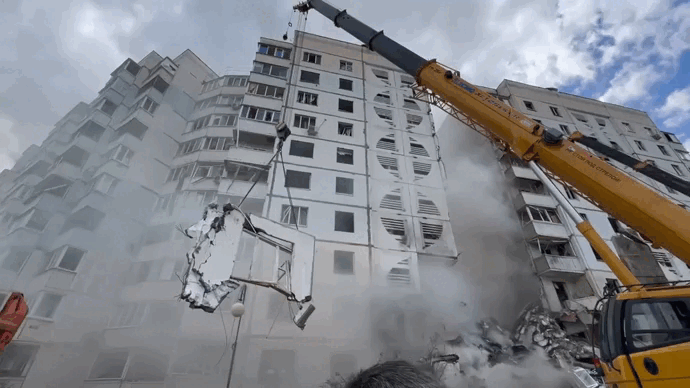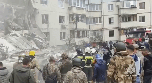 14:56 Из подъездов, которые не были повреждены в результате удара ВСУ, продолжают эвакуировать людей. Поскольку риск полного обрушения здания крайне велик.