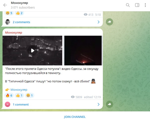 "После этого прилёта Одесса потухла", - передаёт телеграм-канал "Монокуляр".