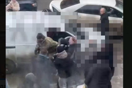 Но прохожие не стали терпеть происходящее. Сперва похитителей пытались убедить словами. Но когда нормальные аргументы закончились, один из очевидцев ударил ТЦКшника прямо в лицо. Такое происходит крайне редко, ведь "могилизаторы" вооружены и их много, к тому же они способны убить человека и за меньшее.