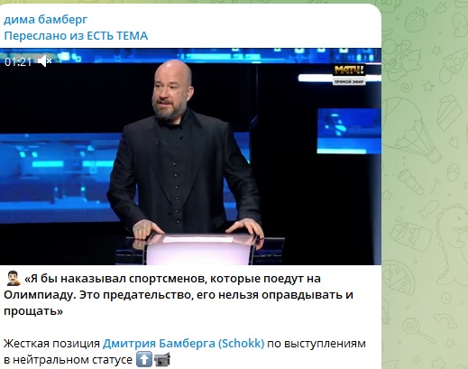Известный рэпер Schokk (Дмитрий Бамберг) честно высказался по вопросу допустимости или недопустимости выступления русских спортсменов на Олимпиаде в Париже.