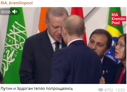 После завершения выступлений в формате аутрич Путин и Эрдоган тепло попрощались.