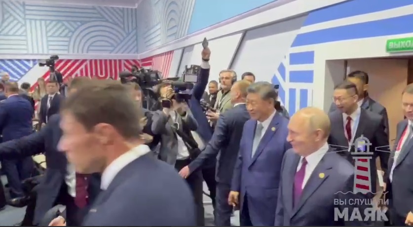 А вот так говорили перед началом аутрич. Переводчик постоянно что-то передавал Путину. Си Цзиньпин был многословен. О чём говорили? Можем только догадываться. Но судя по улыбкам, о чём-то хорошем... Хорошем для нас. И, вероятно, плохом для оппонентов.