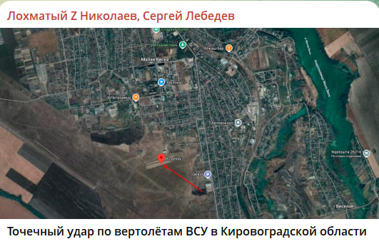 В Кировоградской области зафиксирован точечный удар по украинским вертолётам Ми-8 и Ми-24, находившимся вне аэродромной инфраструктуры, на временной площадке базирования в районе города Малая Виска.