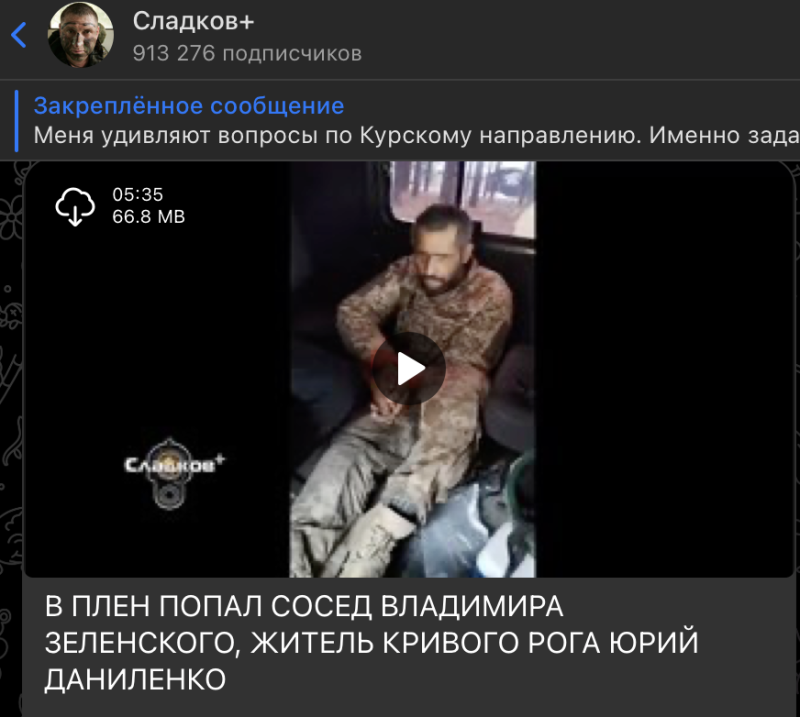 Скриншот: t.me/Sladkov_plus/11150