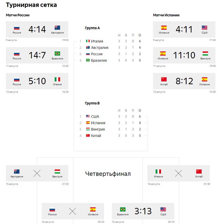 Женская сборная России по водному поло встретится во вторник, 16 августа с конкурентками из Испании. Предстоит матч за выход из группы - в случае победы, полуфинал наш.