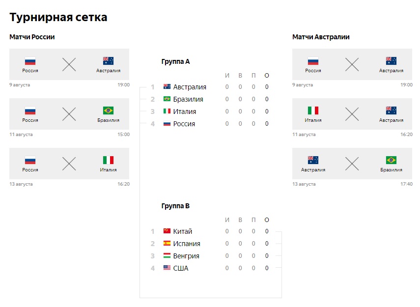 Сборные России и Австралии по водному поло встреятся в Рио-де-Жанейро во вторник, 9 августа. Начало матча в рамках олимпийского турнира в 19:00.