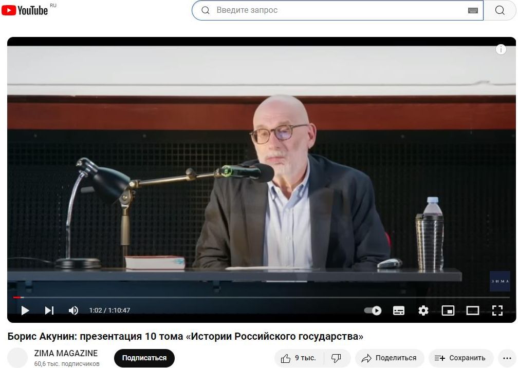 Борис Акунин*. Скриншот: ютуб-канал Zima Magazine