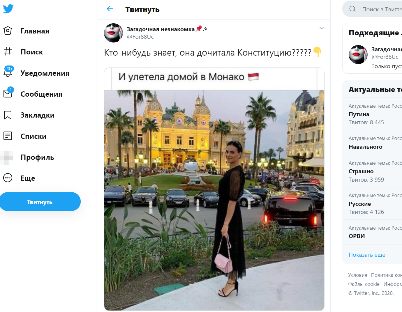 Олимпийскую чемпионку Елену Исинбаеву, которая входит в состав рабочей группы по внесению поправок в Конституцию, продолжают осаждать в соцсетях. В Twitter в череде упрёков спортсменке припомнили старое фото из Монако. В подписи автор твита язвительно замечает: "Кто-нибудь знает, она дочитала Конституцию?"