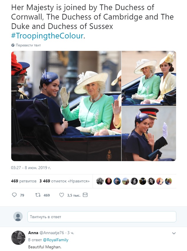 Герцогиня Сассекская Меган Маркл впервые после родов вышла в свет. Она не пропустила парад в честь дня рождения королевы Елизаветы II. Британцы позитивно оценили ее первое появление на публике: "Она прекрасна", - писали они в твиттер-аккаунте королевской семьи.