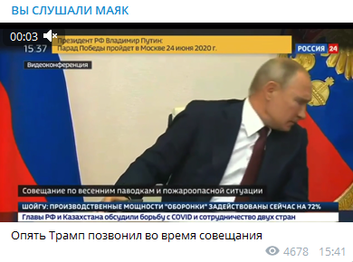 Telegram-канал "Вы слушали Маяк" в шутку предположил, что Путина отвлёк президент США Дональд Трамп.