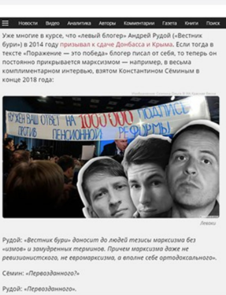 Кроме того, Рудой* поддерживал Навального, сотрудничал с Константином Сёминым. Это никого не удивит. А вот другое его сотрудничество намного интереснее - речь о признанной за свою подрывную деятельность в России персоной нон грата Карин Клеман (в ноябре 2019 года ей был запрещен въезд в Россию на 10 лет как представляющей угрозу для безопасности государства).