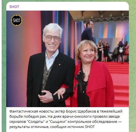 Новость о выздоровлении Бориса Щербакова. Скриншот: телеграм-канал SHOT