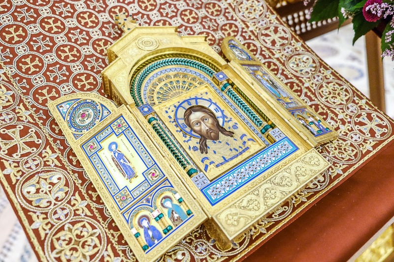Образ сильно почитали на Руси, особенно воины. С изображением Христа на знаменах шли сражаться. Недавно в Челябинск привозили небольшой складень — подарок защитникам Родины от президента.