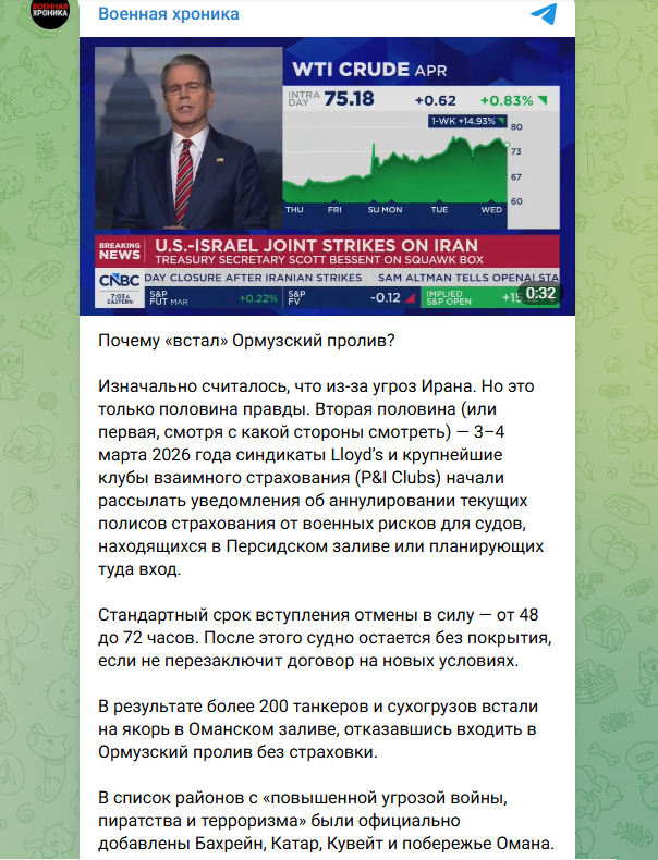 Случилось то, что предрекали многие мировые эксперты – но, видимо, почему-то не счёл возможным Дональд Трамп. Иранцы после нападения на них закрыли пролив, ещё недавно считавшийся самым загруженным морским маршрутом.