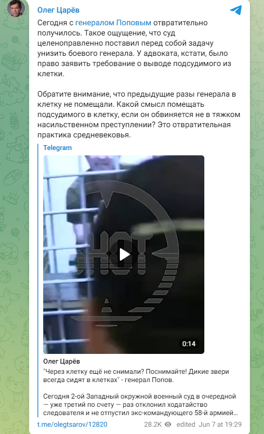 Скриншот: Олег Царев/Telegram