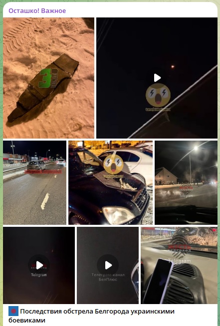 Также он добавил, что в городе в 2 многоквартирных домах выбиты окна в квартирах, ещё в одном частном домовладении выбиты окна, и 3 автомобиля повреждены осколками. А на стоянке предприятия горели четыре грузовых автомобиля, но в настоящий момент оперативными службами они потушены. Также получила повреждения крыша частного домовладения.