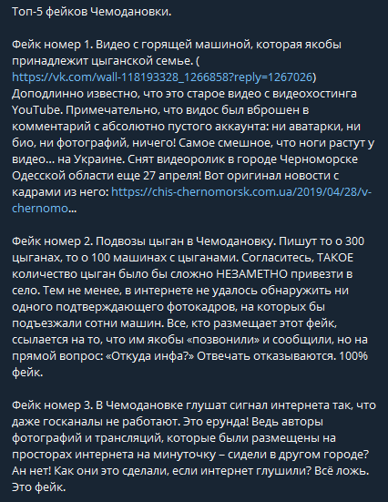 Фейком является и новость о том, что около 300 цыган якобы направились в район конфликта. Также появлялись безумные слухи о 100 машинах.