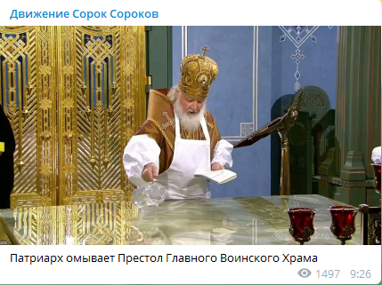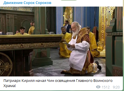 Как передаёт Телеграм-канал движения "Сорок Сороков", Патриарх Кирилл завершил Чин освящения Главного Воинского Храма. Церемония началась сразу после прибытия министра обороны Сергея Шойгу - Партиарх вошёл со Святыми мощами в Храм.