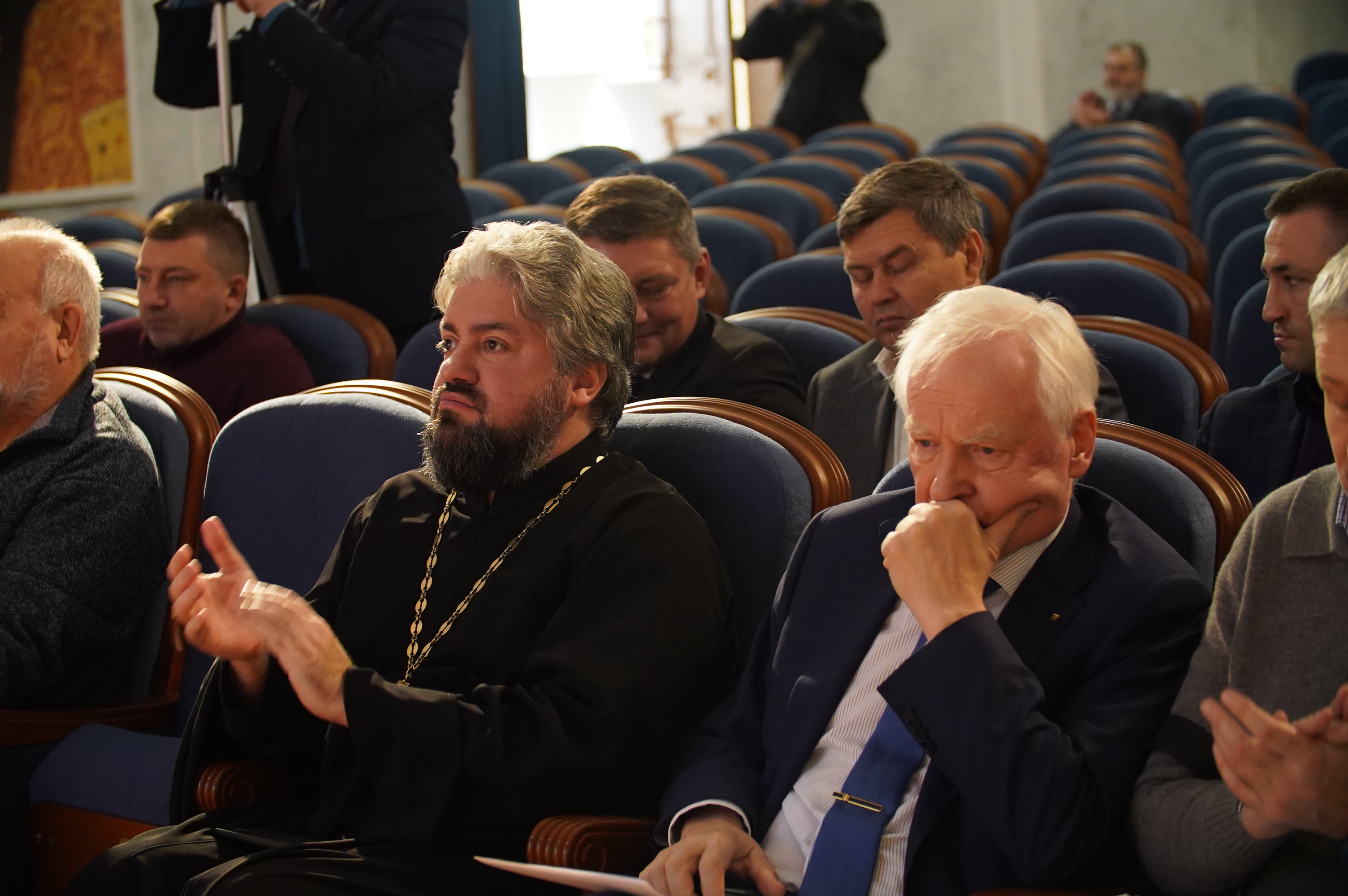 После совместной молитвы, к собравшимся ученым, экспертам, представителям бизнеса, общественным деятелям обратился епископ Кронштадский Вениамин. Поприветствовав собравшихся, Владыка указал, что Россия всегда славилась поиском истины, целеполагание для русского человека было главенствующим: для чего я живу? Русская идея в полной мере выразилась в известной триаде графа Сергея Уварова: «Православие, Самодержавие, Народность». Владыка также указал, что Святейший Патриарх Кирилл неоднократно в своих проповедях обращался к теме русской национальной идеи и, что крайне важна взаимная ответственность за будущую судьбу нашего Отечества перед Богом и священнослужителей и представителей других сословий России.