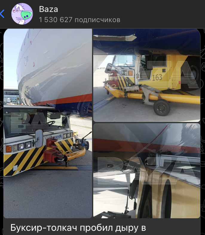 В аэропорту Казани буксир-толкач "случайно" пробил дыру в фюзеляже самолёта компании "Аэрофлот", который готовился к вылету в Анталью.