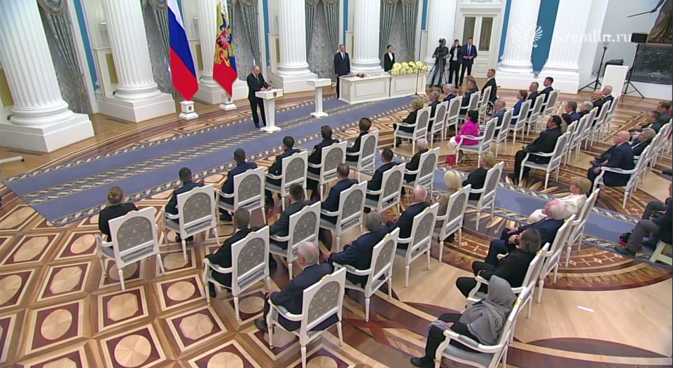Он добавил, что на передовой этой борьбы стоят те, кто исполняет свой воинский, профессиональный, гражданский долг. После этого президент вручил госнаграды отличившимся в ходе специальной военной операции.