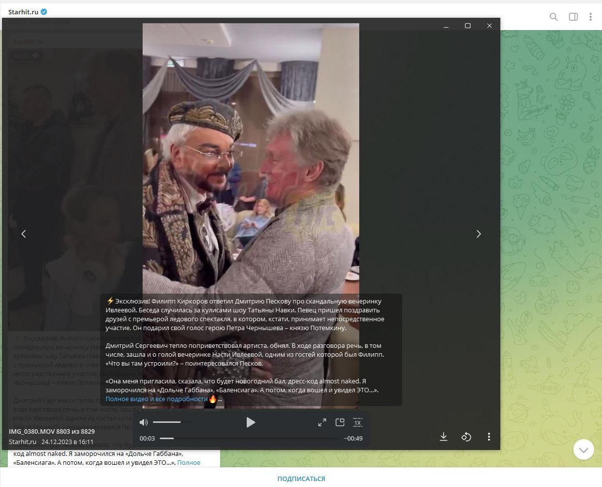 Филипп Киркоров объясняет Пескову, как "на самом деле" всё было... СКРИНШОТ: ТЕЛЕГРАМ-КАНАЛ STARHIT.RU