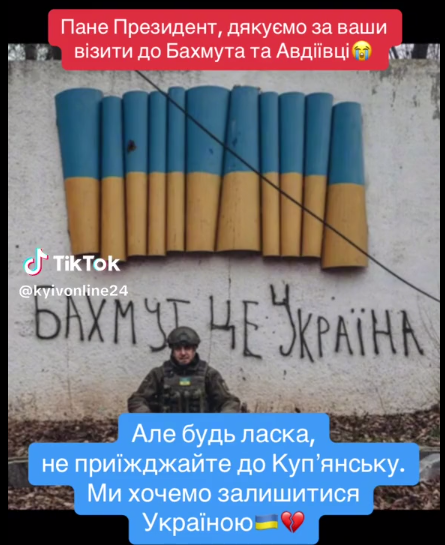 Пан президент, спасибо за ваш визит в Бахмут и Авдеевку. Но, будь ласка, не приезжай в Купянск. Мы хотим остаться в составе Украины.