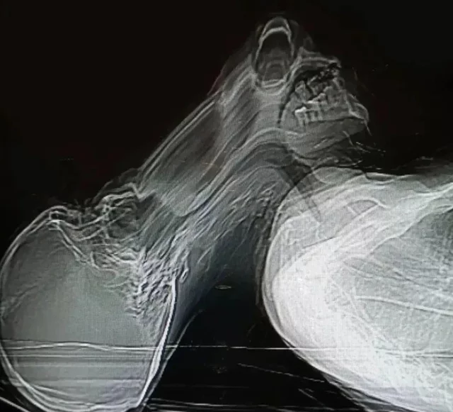 На медицинском фото видно, как пациент дёрнул головой, так что фото выглядит как кадр из фантастического фильма про пришельцев "Чужой".
