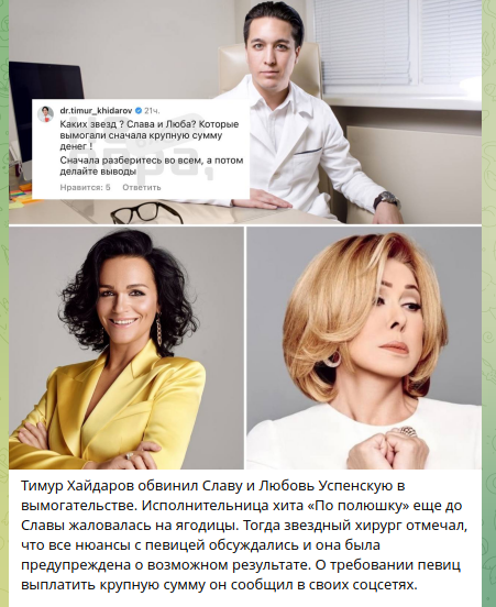 Впрочем, и сам хирург за словом в карман не полез и обвинил Славу и Любовь Успенскую в вымогательстве.