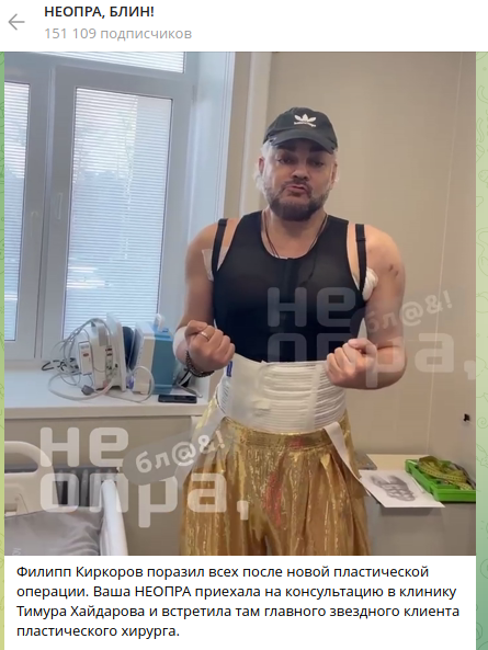 Вот только некоторое время спустя СМИ заметили Киркорова выходящим из медклиники в центре Москвы, где в тот момент принимал совсем другой специалист - пластический хирург с 41-летним стажем Рауф Гайнуллин, владеющий методиками интимной пластики и глютеопластикой (пластика ягодиц). По данным SHOT, один лишь его приём-консультация стоит от 20 000 тысяч рублей.
