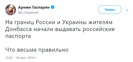 По данным властей РФ, порядка 86% жителей Донецкой и Луганской народных республик рассчитывают получить российское гражданство.