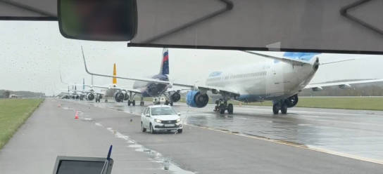 Кроме них, есть ведь и свои рейсы, следующие по расписанию. Из-за этого в Пулково не хватает аэродромного оборудования. А телеграм-канал SHOT опубликовал настоящую пробку из самолётов в аэропорту Санкт-Петербурга.