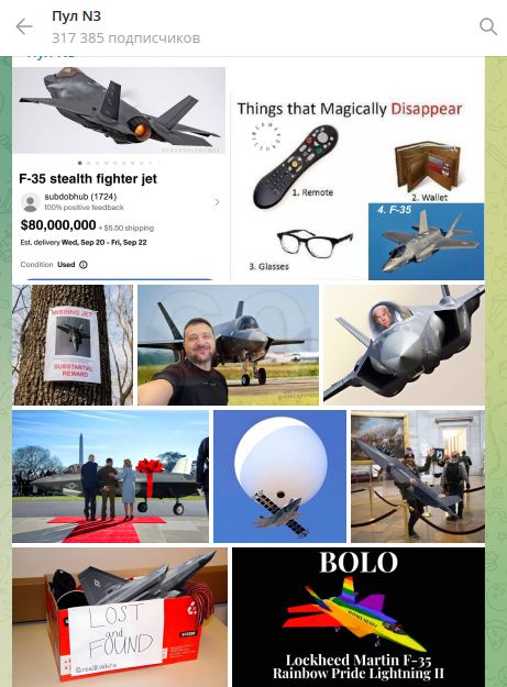 Сама ситуация вызвала шквал мемов в Сети. Кто в шутку интересовался у военных, поискали ли они на Украине, намекая на то, что там американская военная техника и боеприпасы пропадают, как в Бермудском треугольнике. Другие шутили про коробку для пропавших "волшебным образом" вещей, где помимо F-35 лежали очки, кошелёк и пульт от телевизора.