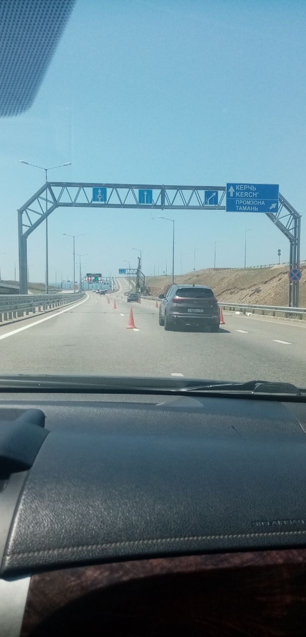 Министр транспорта Крыма Николай Лукашенко проехал по Крымскому мосту и опубликовал фотографии, что ни со стороны Керчи, ни на Кубани нет очереди из машин перед пунктами досмотра.