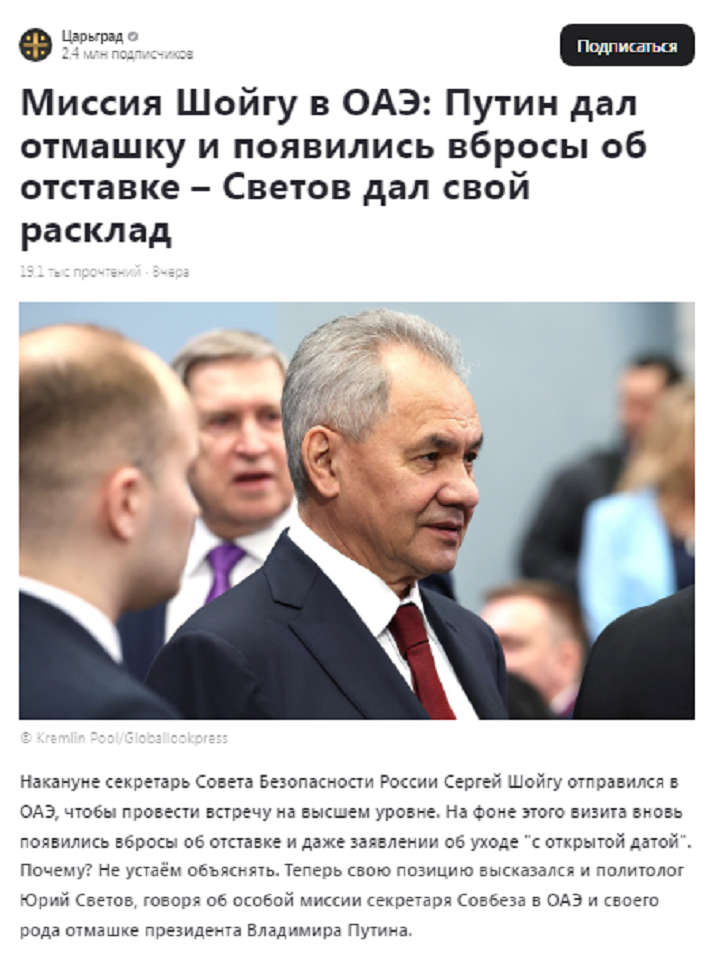 Миссия Шойгу в ОАЭ: Путин дал отмашку и появились вбросы об отставке – Светов дал свой расклад. Фото: Царьград